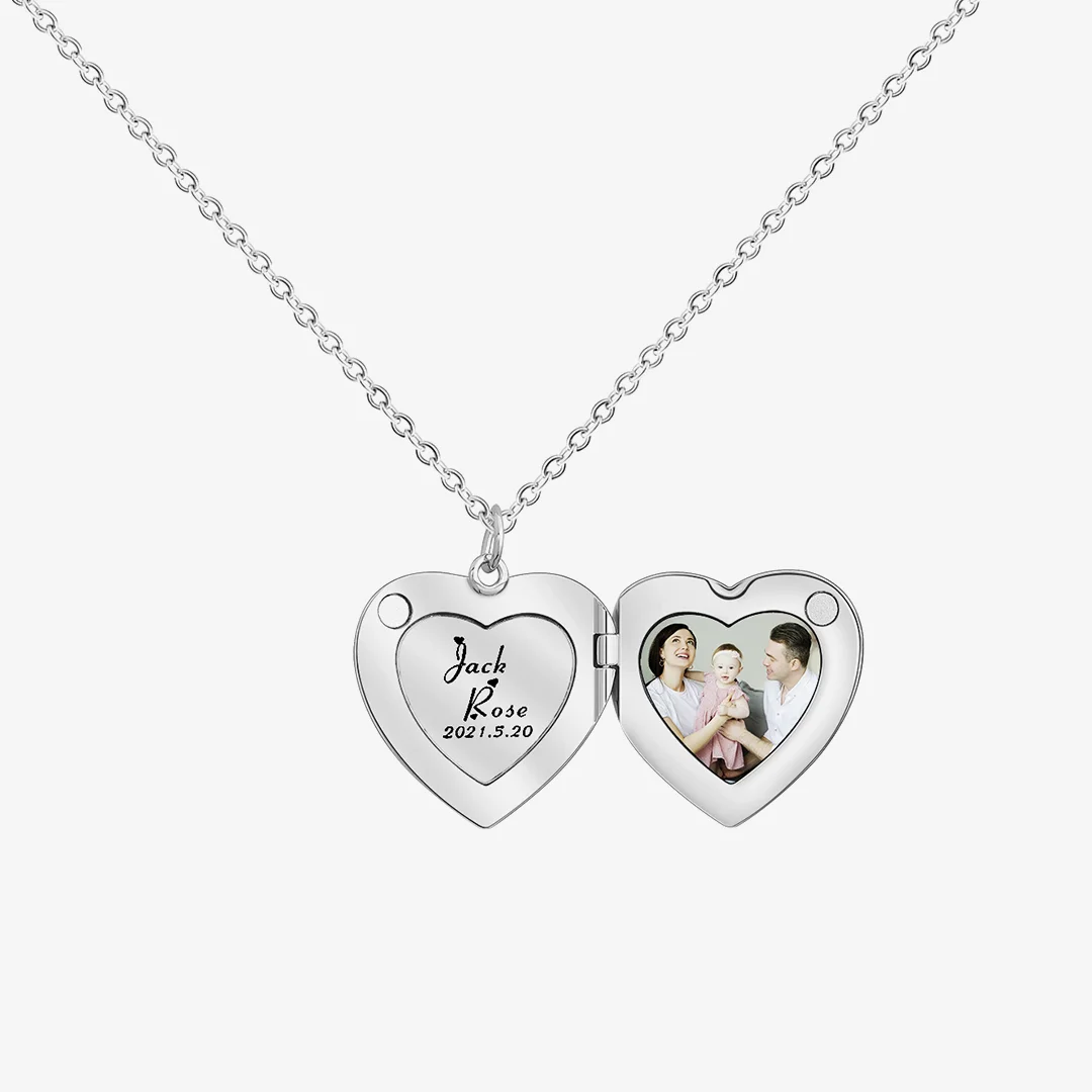 For Love - Customized Double Names, Dates & Photo Heart Necklace