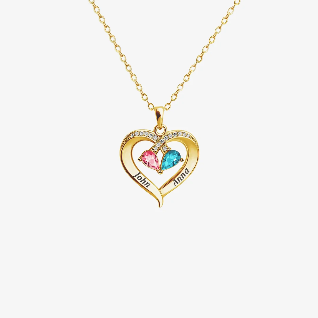 • 1*For Wife - My Heart Only Beats For You Customized Double Birthstones & Names Necklace