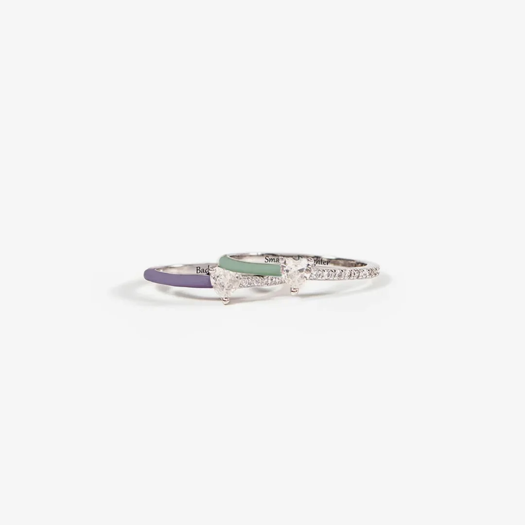 Matching Badass Mother & Smartass Daughter Purple Green Heart-cut Rings