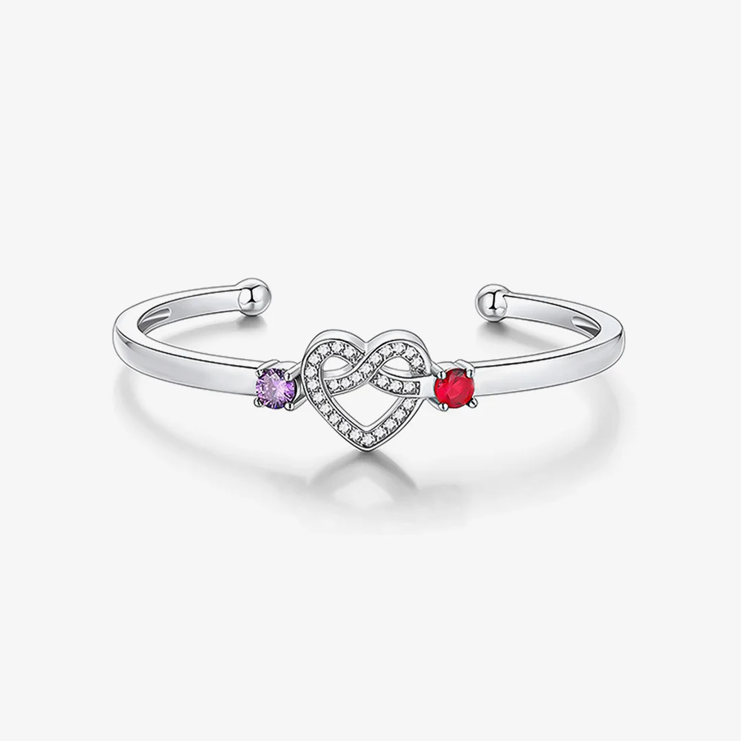 • 1*Mother & Daughter Heart Knot Double Custom Birthstones Bracelet
