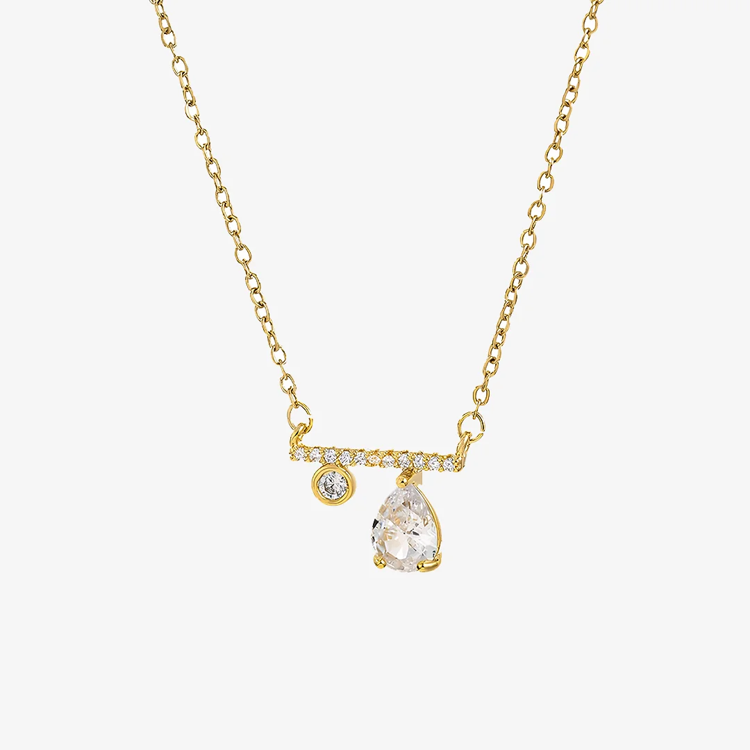 • 1*Teardrop Circle Diamond Balance Pendant Necklace